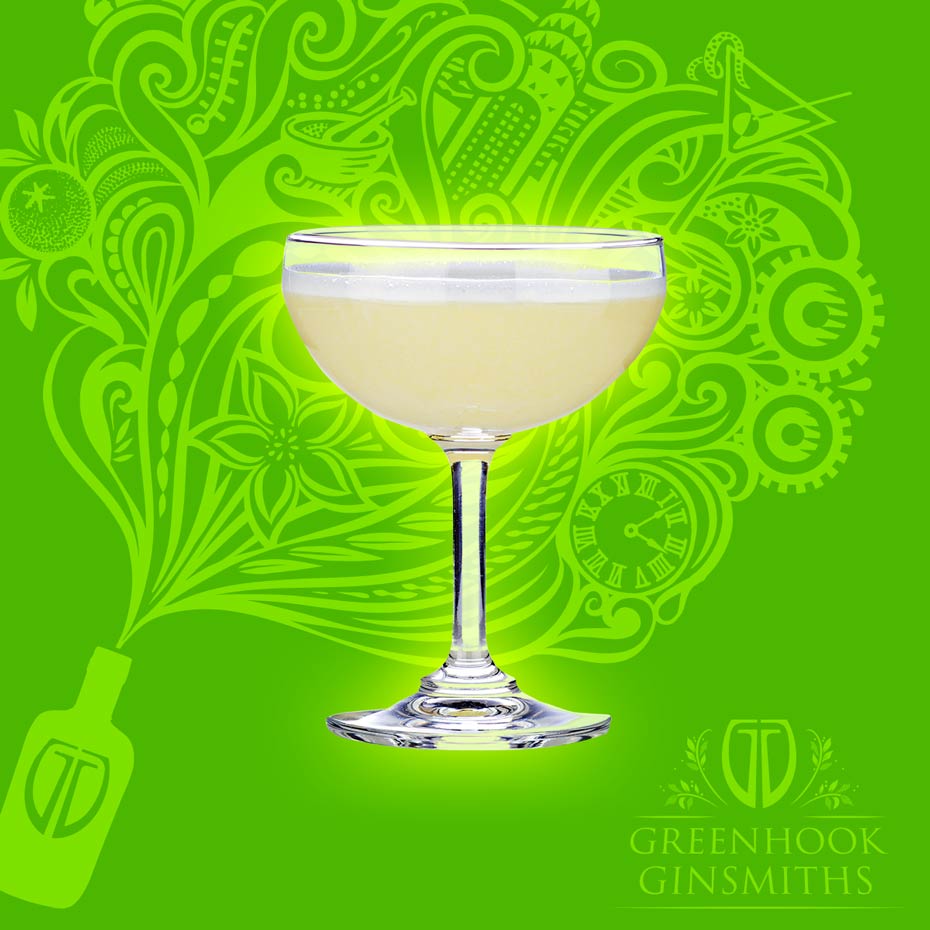 Method: Build all ingredients except for egg white into a short tin. Add egg white to tall tin, combine, dry shake. Hardshake with regular or Kold Draft ice. Double strain, into coupe, garnish with cherry. With a dasher bottle, dash four dots of bitters over meringue.