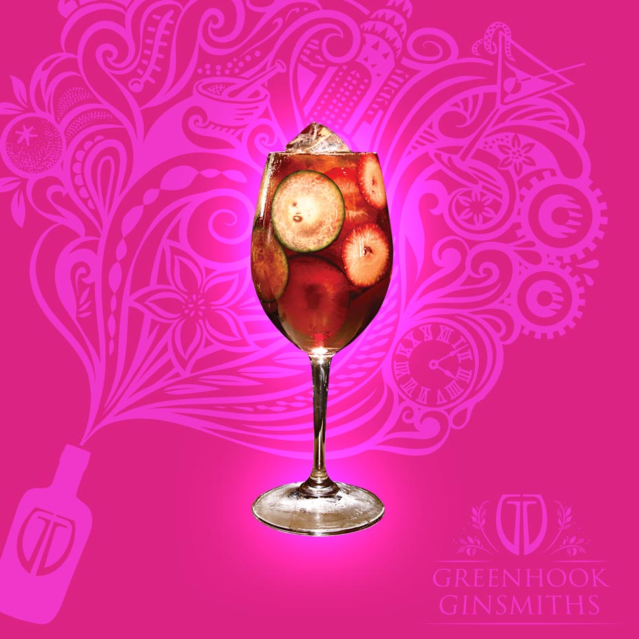 Garnish: Sliced Strawberry and Sliced Cucumber